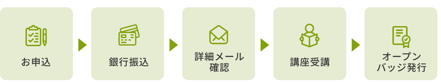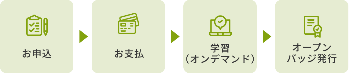 | 04 オープンバッジ発行 | 受講後、約2週間でオープンバッジ発行のメールが届きます。 |