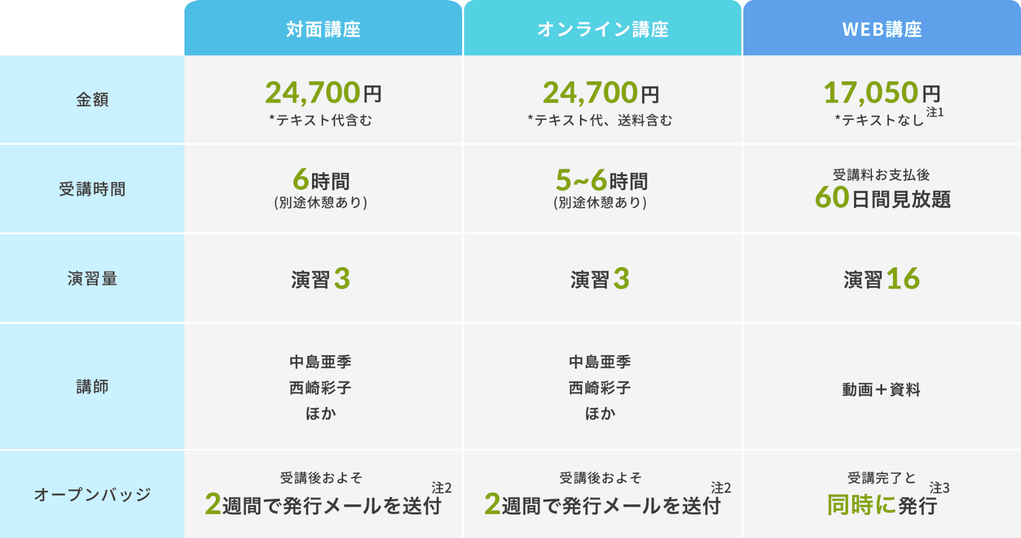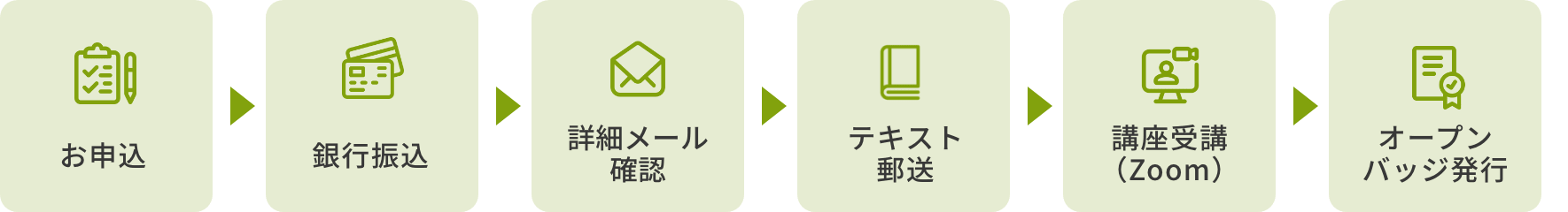 注2:オープンバッジは協会から発送します。受講後2週間を過ぎても発行メールが届かない場合は、協会にお問合わせください。