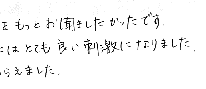 当社のお客様の声今の私にはとても良い刺激になりました。やる気もらえました。