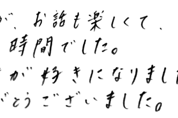 当社のお客様の声長時間でしたが、アッという間でした。ありがとうございました!