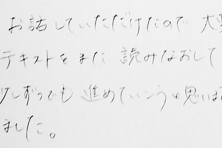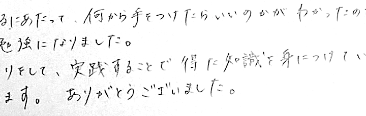 当社のお客様の声とても楽しく学べました。年末までにメドをつけたいと思いました。ありがとうございました。