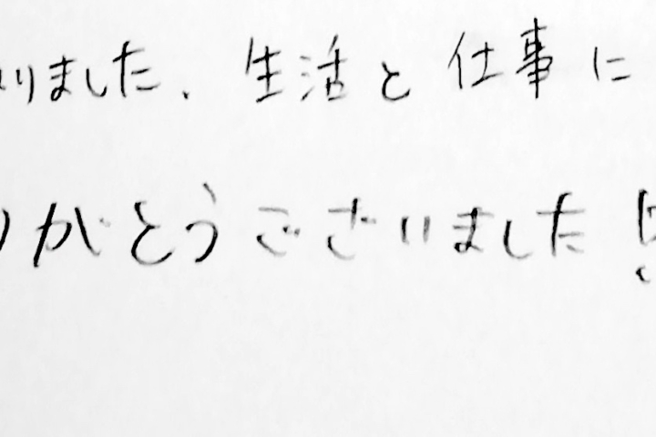 当社のお客様の声長時間でしたが、お話も楽しくて、分かりやすくとても有益な時間でした。増々お片づけが好きになりました。どうもありがとうございました。