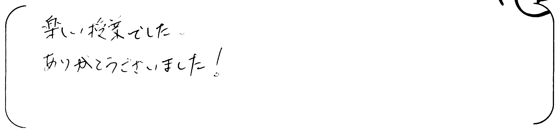 << 先生のお話おもしろかったです。長時間お疲れ様でございます。