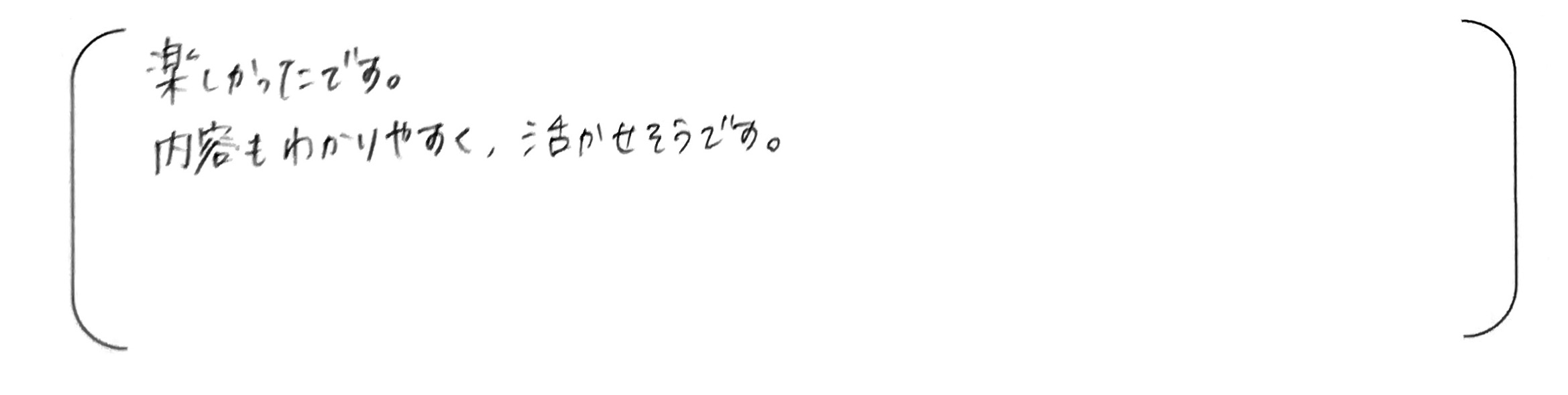楽しかったです。内容もわかりやすく、活かせそうです。
